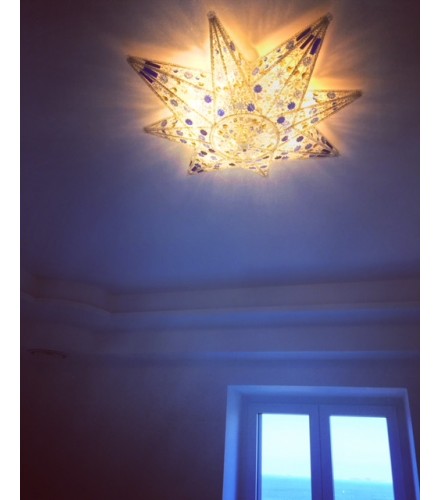 Crystal ceiling light "Wind Rose" with blue and aquamarine decorations